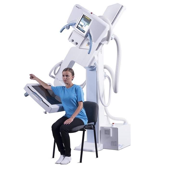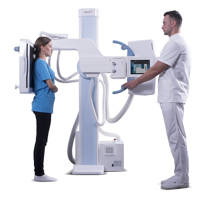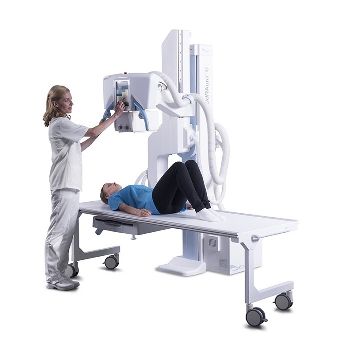 The ddRAura™ U is designed to meet the demands of busy Radiology Departments, Orthopedic Practices or Imaging Centers. The completely motorized ddRAura™ U is quickly and effortlessly positioned with Swissray’s APS – Automatic positioning system via handheld remote control, optional wireless foot pedals or ddRAura™ workstation control. The ddRAura’s™ tube mounted touchscreen provides control generator, collimator, system position, patient procedure list selection and image preview at the patients side. The compact design fits easily in small rooms and requires no additional ceiling support. The ddRAura™ U can be positioned to image wheelchair or stretcher patients when paired with optional wireless detectors. Combine multiple images with the ddRAura™ U’s automated single focus stitching option.